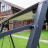 Металлические детали окрашены в электростатическом поле и устойчивы к коррозии. Подушки и крыша изготовлены из специальной уличной ткани, устойчивой к солнцу, ультрафиолетовым лучам, влаге, грязи и пятнам.