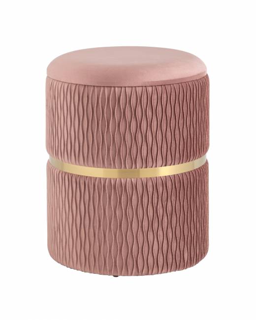 Пуф Джесси с ящиком велюр розовый с декоративным золотым ободком